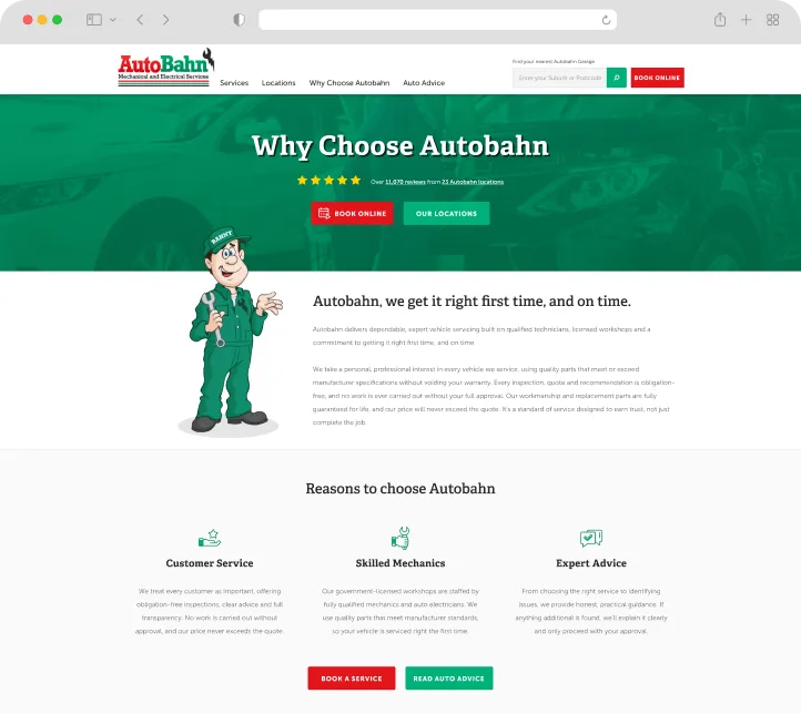 While their in-store experience had earned long-standing loyalty, their website no longer reflected the quality of service customers expected. This project focused on modernising AutoBahn’s digital experience by improving usability, simplifying bookings, and helping customers quickly find and connect with their nearest service centre.