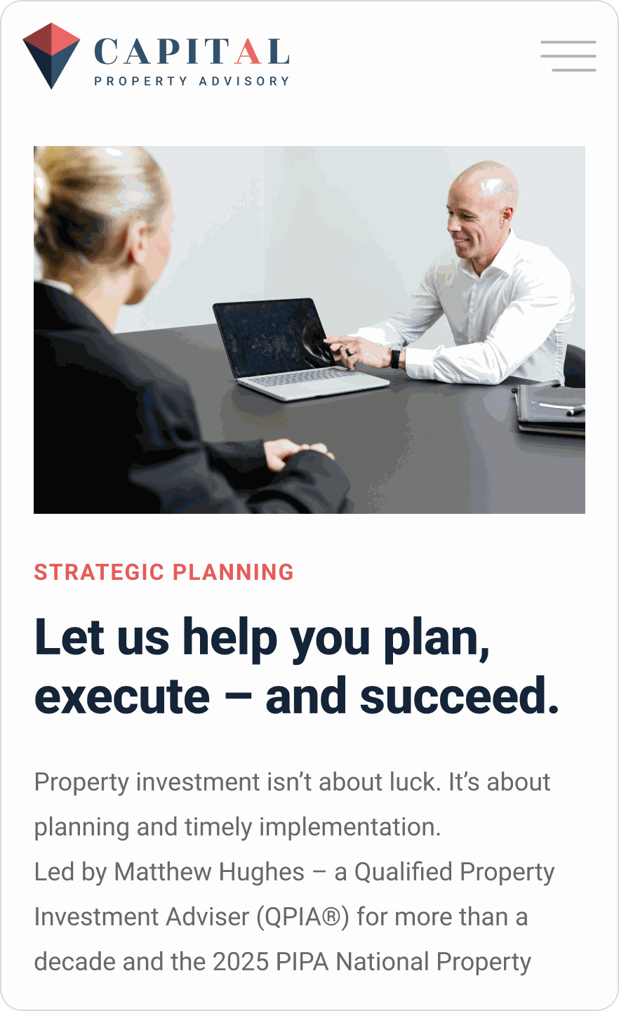 Capital Property Advisory has earned its place as one of Perth’s most respected buyer’s agencies. Their advice carries weight, their strategy is research driven, and their results speak for themselves. The only thing not keeping pace was their website.